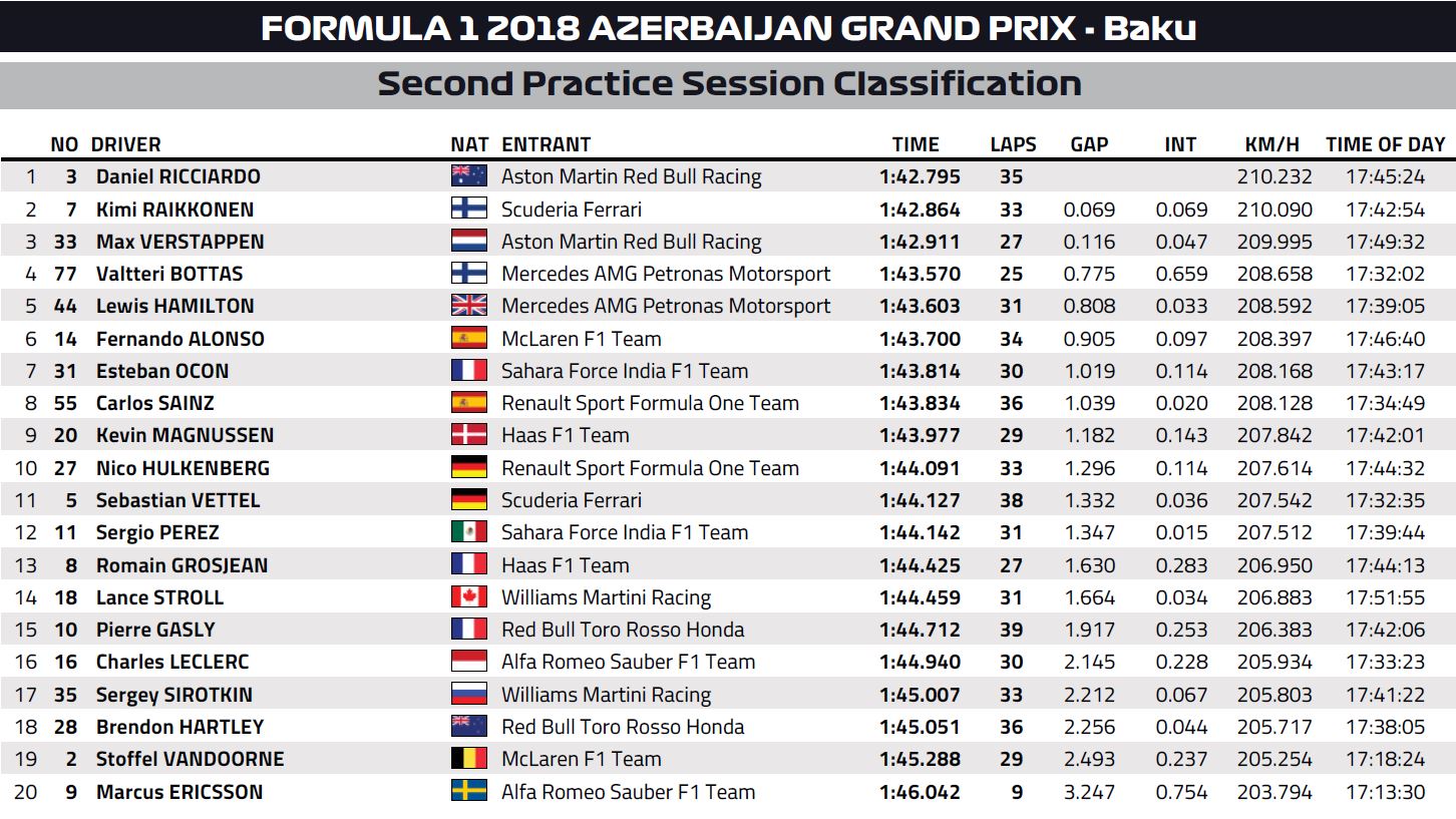 Sul circuito atipico di Baku, ad oggi, abbiamo avuto evidenza di una situazione di grande equilibrio almeno per quanto riguarda i top team. Ricciardo e la Red Bull sono stati protagonisti in entrambe le sessioni ma Mercedes e Ferrari non sono assolutamente distanti.